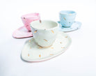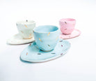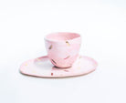 Ručně tvarovaný šálek a podšálek s glazurami v jedinečných ručně vyrobených odstínech.